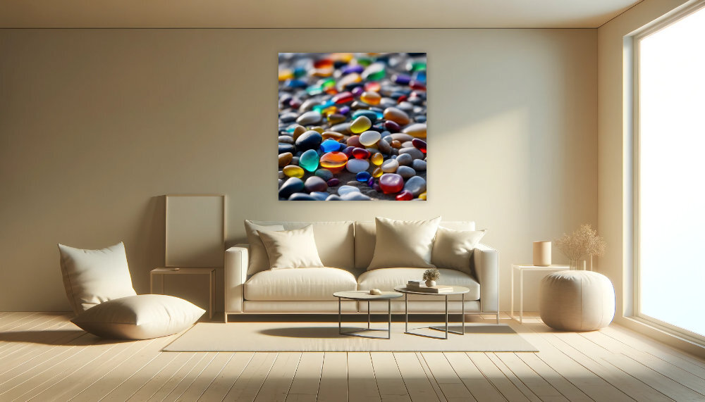 Tauche ein in die farbenfrohe Welt unserer Bilderserie 'Regenbogen-Kiesel'. Lass Dich von der Vielfalt und Harmonie der Farben inspirieren, die wie bunte Akzente in einem Meer aus sanften Grautönen funkeln. Jedes Kunstwerk in dieser Serie spiegelt die einzigartige Schönheit wider, die entsteht, wenn Licht und Farbe aufeinandertreffen – eine Sinfonie für die Augen. Unsere hochwertigen Drucke bringen Lebensfreude und einen Hauch von Farbmagie in jeden Raum. Ideal für alle, die ihrem Zuhause einen lebendigen und gleichzeitig eleganten Touch verleihen möchten.