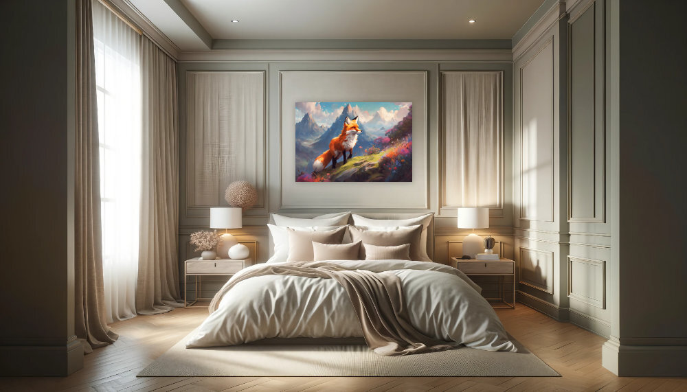 Tauche ein in die magische Welt unserer Bilderserie Märchenhafter Fuchs. Diese Serie fängt die zauberhafte Stimmung eines verwunschenen Waldes ein und verzaubert mit warmen, leuchtenden Farben. Die kunstvollen Darstellungen strahlen eine mystische Atmosphäre aus, die dich in eine Märchenwelt entführt. Ein Highlight für Liebhaber von fantastischen und naturverbundenen Motiven, die dein Zuhause in ein Märchenreich verwandeln.