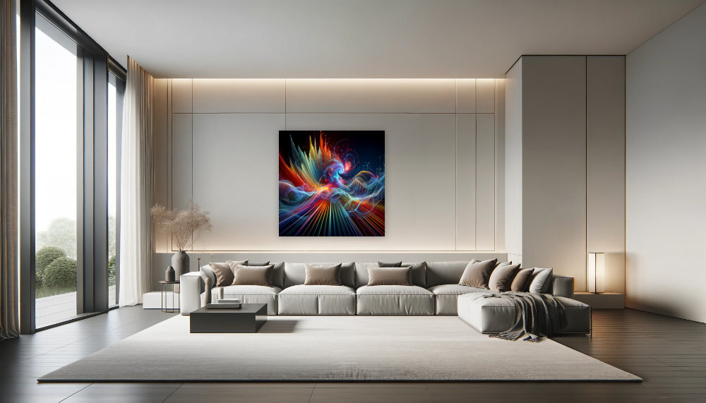 Eintauchen in die vibrierende Welt der 'Soundwaves'-Bilderserie – eine Ode an die Harmonie und Energie von Musik. Lasse Dich von den leuchtenden Farbkompositionen und der visuellen Darstellung von Klängen verzaubern. Diese Sammlung ist ein fesselndes Erlebnis für alle Sinne, welches die Grenzen zwischen Klang und Sichtbarem verschwimmen lässt. Perfekt für musikbegeisterte Kunstliebhaber, die ihren Raum mit einer Sinfonie aus Farben und Bewegung zum Leben erwecken möchten.