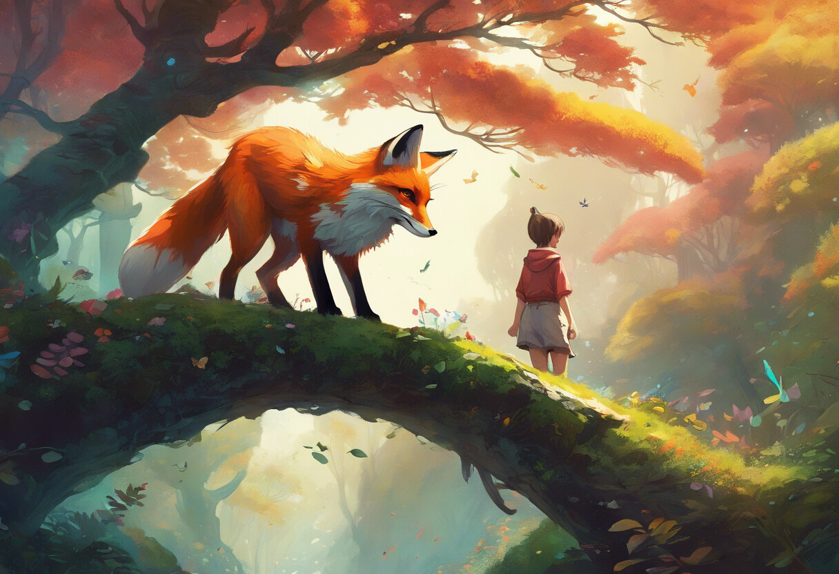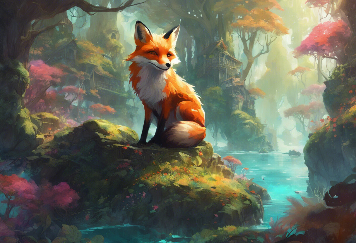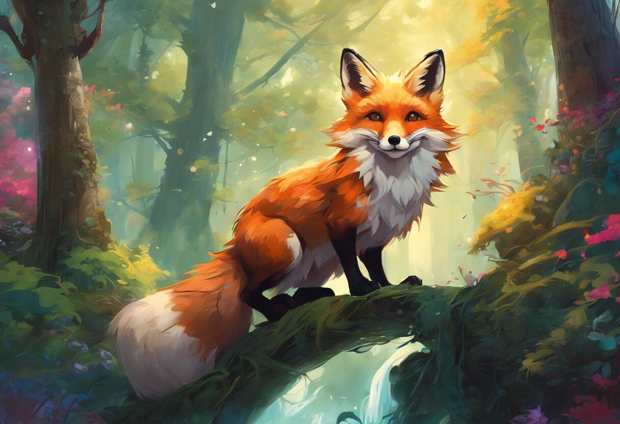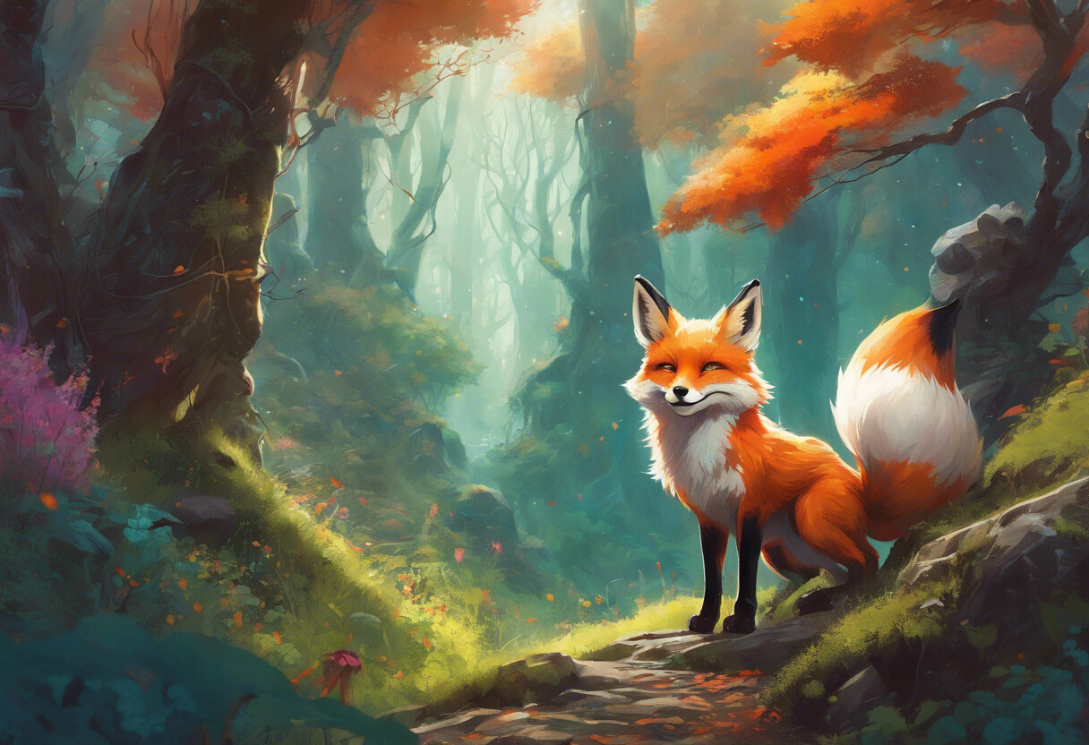 Tauche ein in die magische Welt dieses kunstvoll gestalteten Bildes, das einen verschmitzt lächelnden Fuchs inmitten eines farbenfrohen, verwunschenen Waldes zeigt. Die lebhaften Farben von Flora und Fauna und das gekonnte Spiel von Licht und Schatten erzeugen eine bezaubernde Szenerie, die Leichtigkeit und Freude ausstrahlt. Ideal für Naturliebhaber und jene, die eine märchenhafte Atmosphäre in ihre Räume bringen möchten.