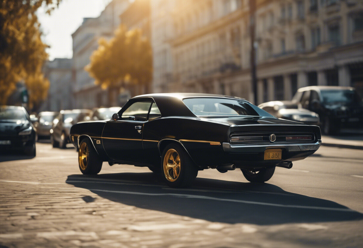 Die Bilderserie 'Golden Muscle Car' fängt das Gefühl von Freiheit und den Geist der wilden 60er in einer explosiven Farbgebung ein. Inspiriert von der Ära der klassischen Automobile, verschmelzen glänzende Goldtöne mit dem satten Schwarz der Nacht. Diese Kunstwerke transportieren Dich direkt auf die legendären Straßen des amerikanischen Traums, wo Geschwindigkeit und Stil Hand in Hand gehen. Jedes Stück strahlt Stärke und Eleganz aus, ideal für Liebhaber von Vintage und zeitlosem Design.